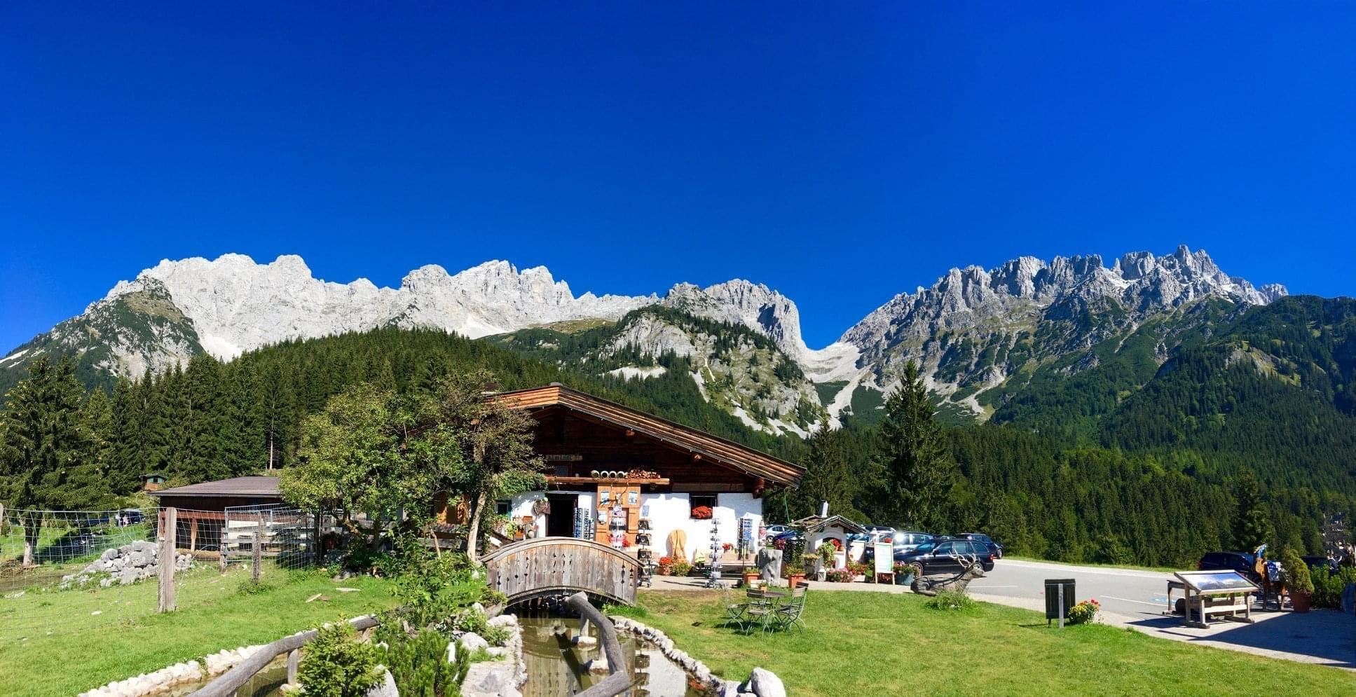 Das Almladl liegt direkt am Wilden Kaiser auf 1.080 m und ist bequem mit dem Auto (Parkgebühr € 5,-) oder Bus zu erreichen.