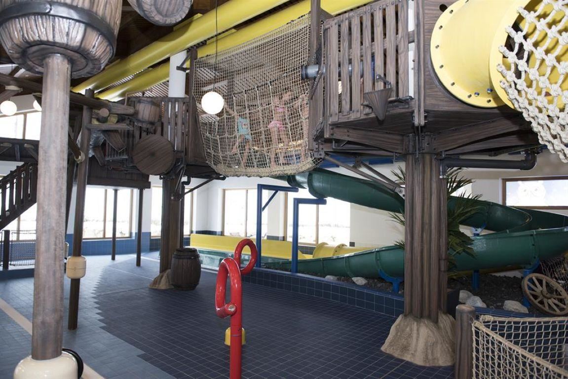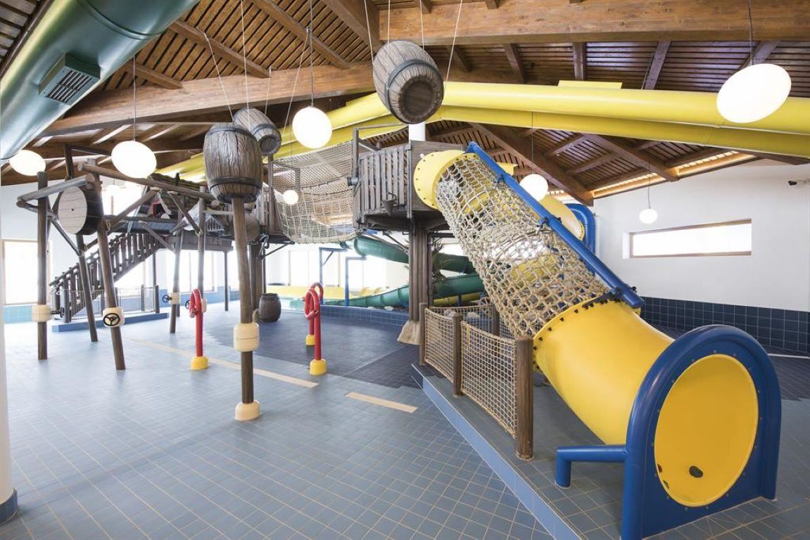Ellmi´s Wasserwelt mit Wasserrad, Hexenhaus, Wasserkanonen, Dschungelbrücke, Turbo- und Kinderrutsche, Krabbelröhren, Netztunnelaufstieg, Klettergerüst mit Kippfass, Netztunnelaufstieg zum Actionpodest mit Kippfass, Krabbelröhren mit Löchern.