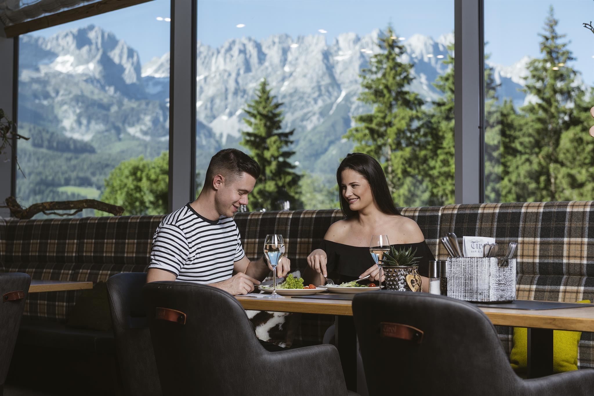 Egal ob ein reichhaltiges Frühstück von 7-11 Uhr vom Buffet als perfekter Start in einen spannenden Tag oder ein exklusives Abendessen nach einem ereignisreichen Tag. Ganz egal wann Sie uns besuchen, wir werden Sie begeistern. In unserem neugestalteten Restaurant „Tirol Bar & Grill“ findet jeder etwas.