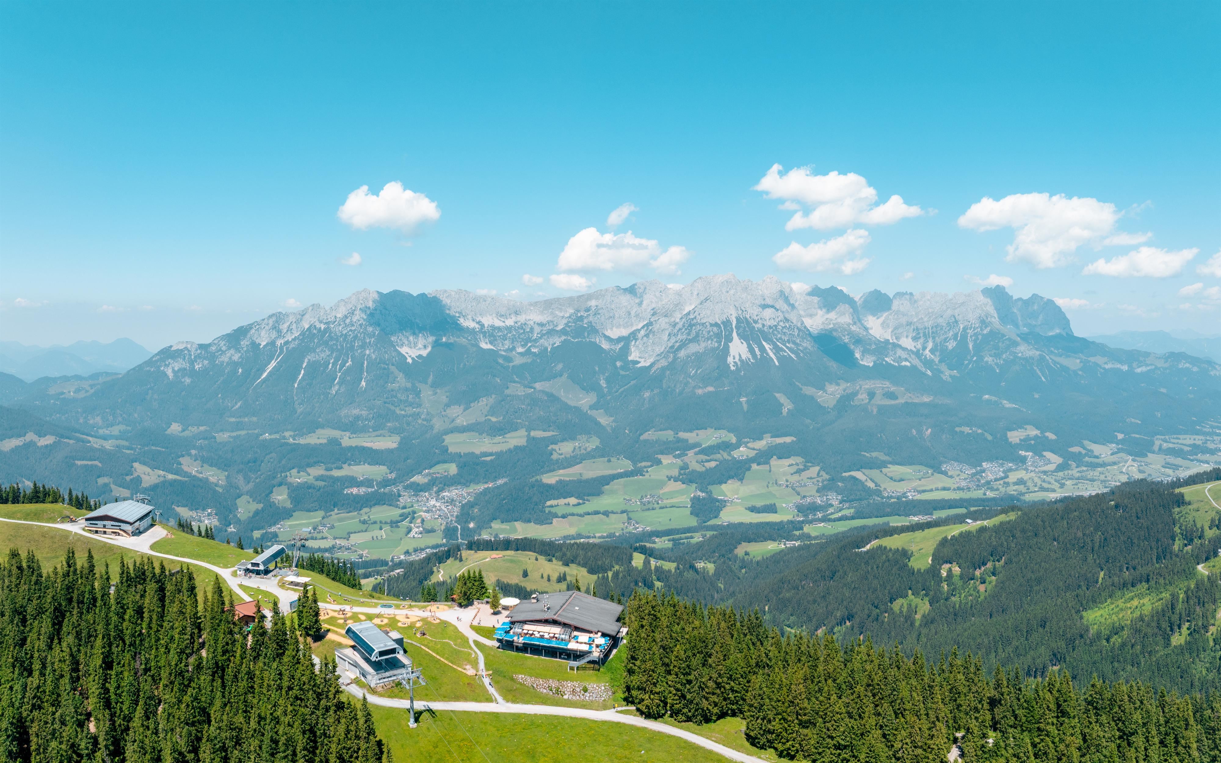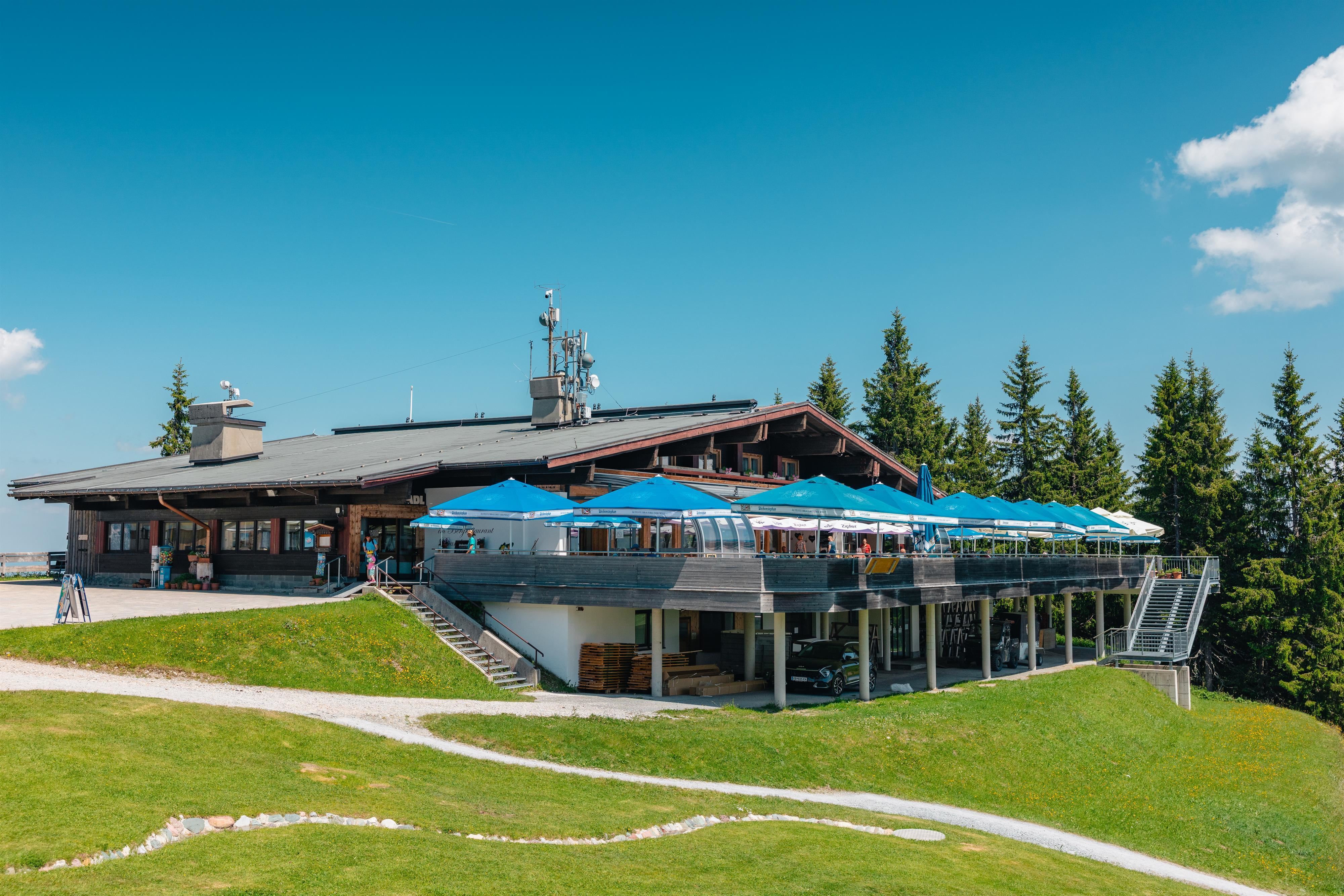 mit der 8er Gondelbahn in Scheffau oder auch mit der Hartkaiserbahn von Ellmau, im Sommer auch mit dem Rad erreichbar oder zu Fuß
