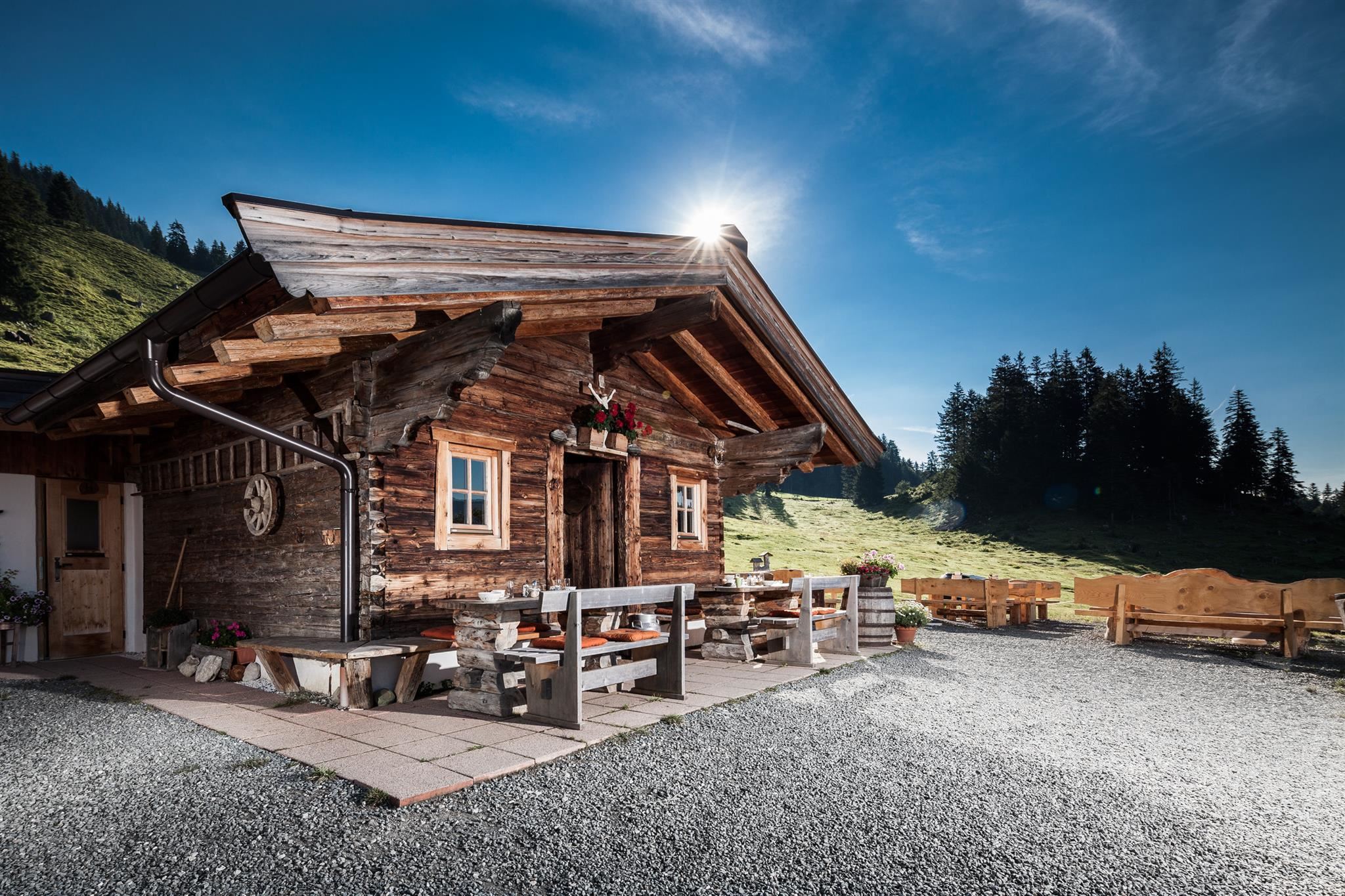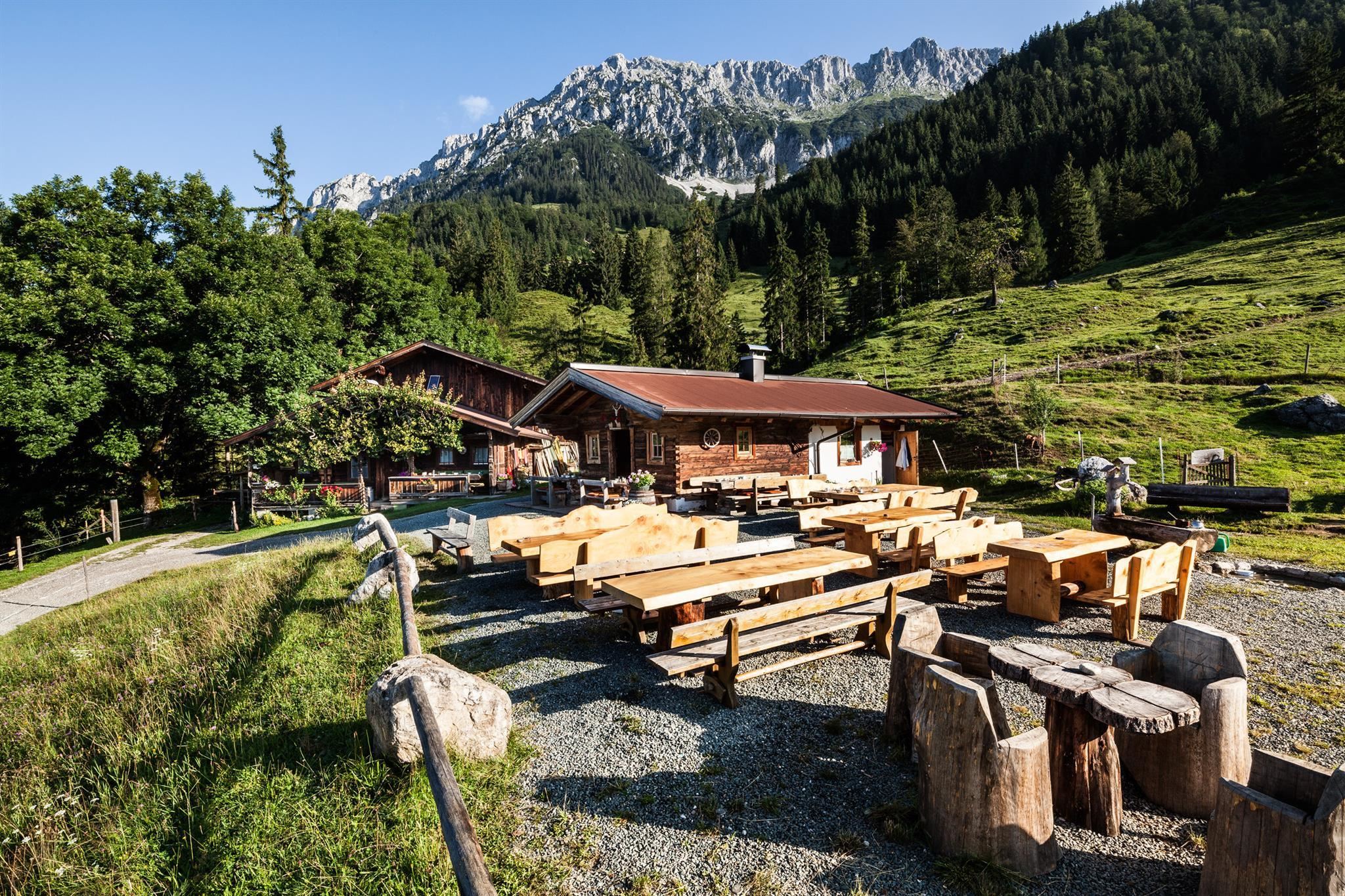 Nach ca. 1 Stunde Gehzeit aus dem Ortszentrum Scheffau erreichen Sie die Alm am Fuße des Wilden Kaisers. Hier können Sie abschalten, den Rummel im Tal lassen und einfach mal Sie selbst sein. Ein besonderes Highlight ist die Züchtung der Angus-Rinder, deren Fleischspezialitäten (Schinken und Wurst) man auf der Alm genießen kann. Geöffnet von Anfang Mai bis Ende September.